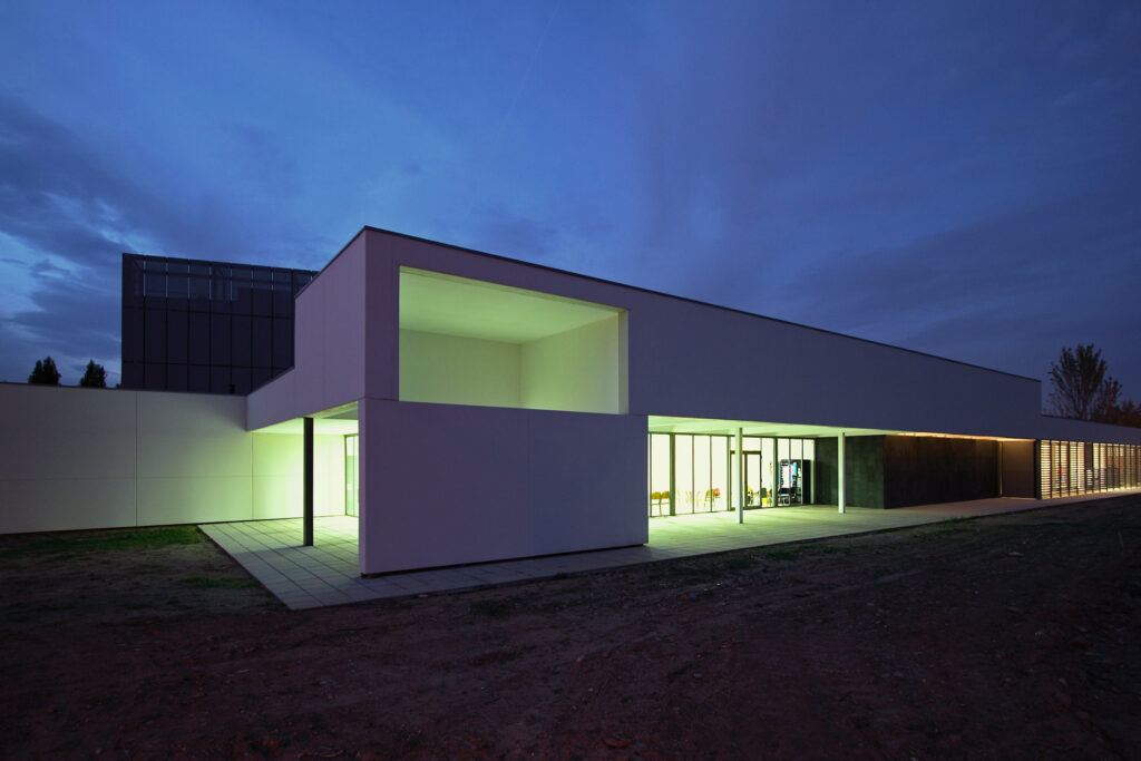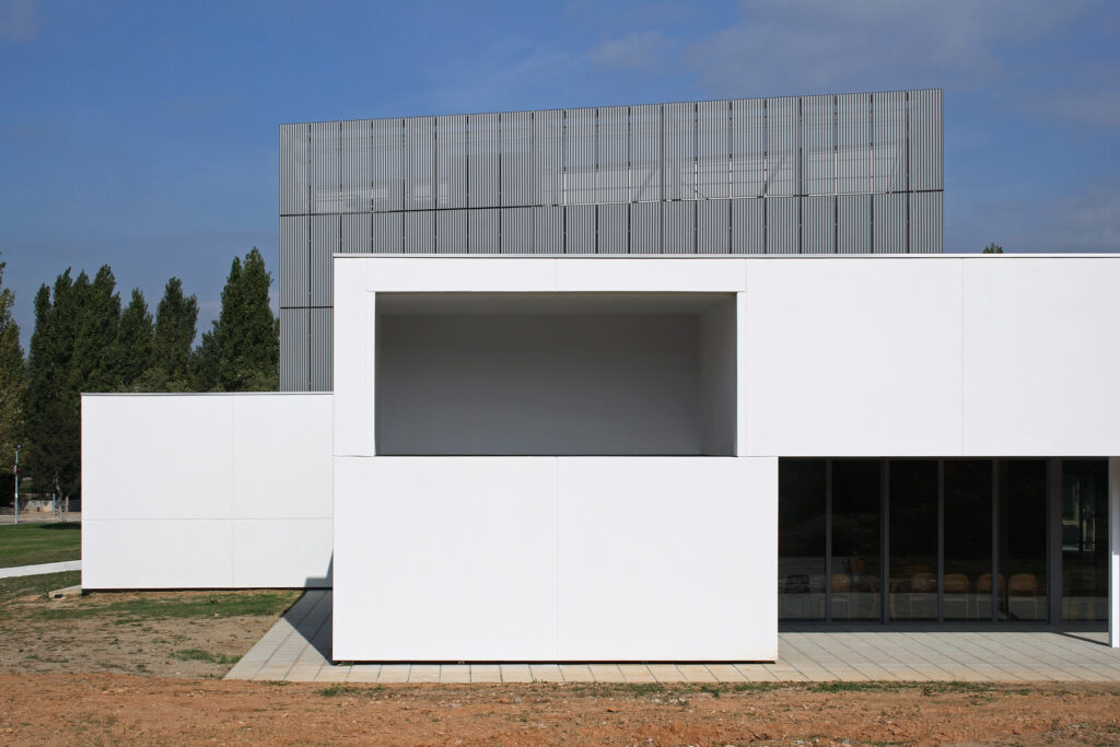 La nova arquitectura recull els trets principals de l’existent amb façanes de paraments blancs i cobertes metàl·liques de color gris. En alguns llocs, com al corredor adossat al teatre que connecta els dos edificis, la nova arquitectura en assolir l’alçada i tractament del forat de l’existent, es confonc amb ella.