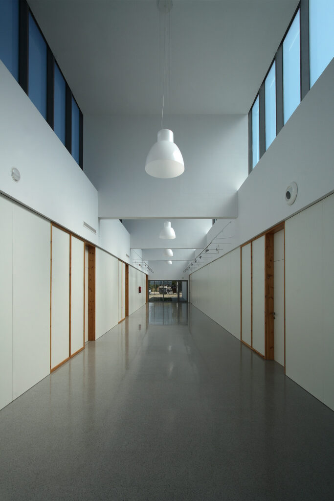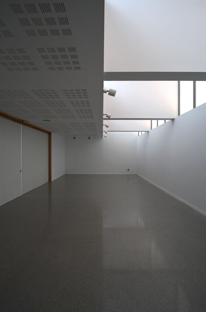La secció esdevé el motiu espacial principal de l’edifici. La coberta s’aixeca formant uns lluernaris que deixen entrar llum difusa en aquest espai central i resolen així, la gran profunditat i compacitat de l’edifici.
