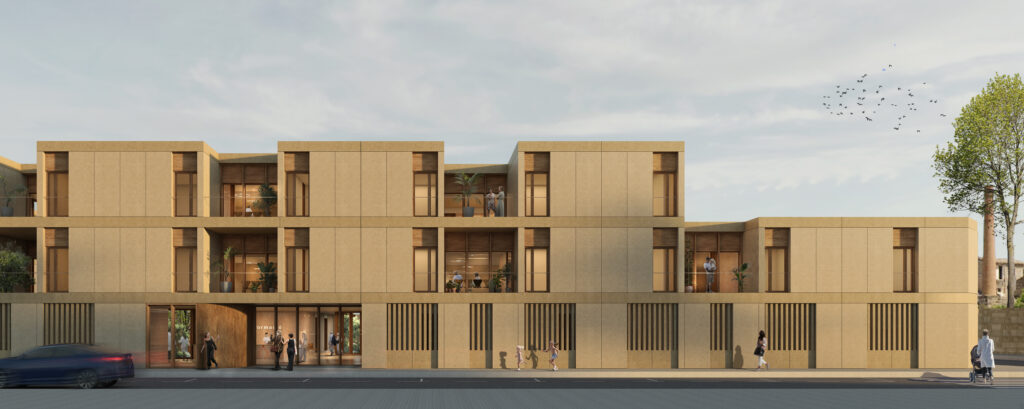 La forta personalitat i coherència de les façanes del poble, amb tons terrosos típics dels pobles tradicionals de Mallorca i la presència de materials nobles com el marès i la fusta, condueixen inevitablement a l’elecció de materials i una paleta de colors que es mimetitzi amb el seu entorn i no converteixi l’edifici en un element disruptiu.