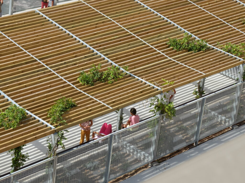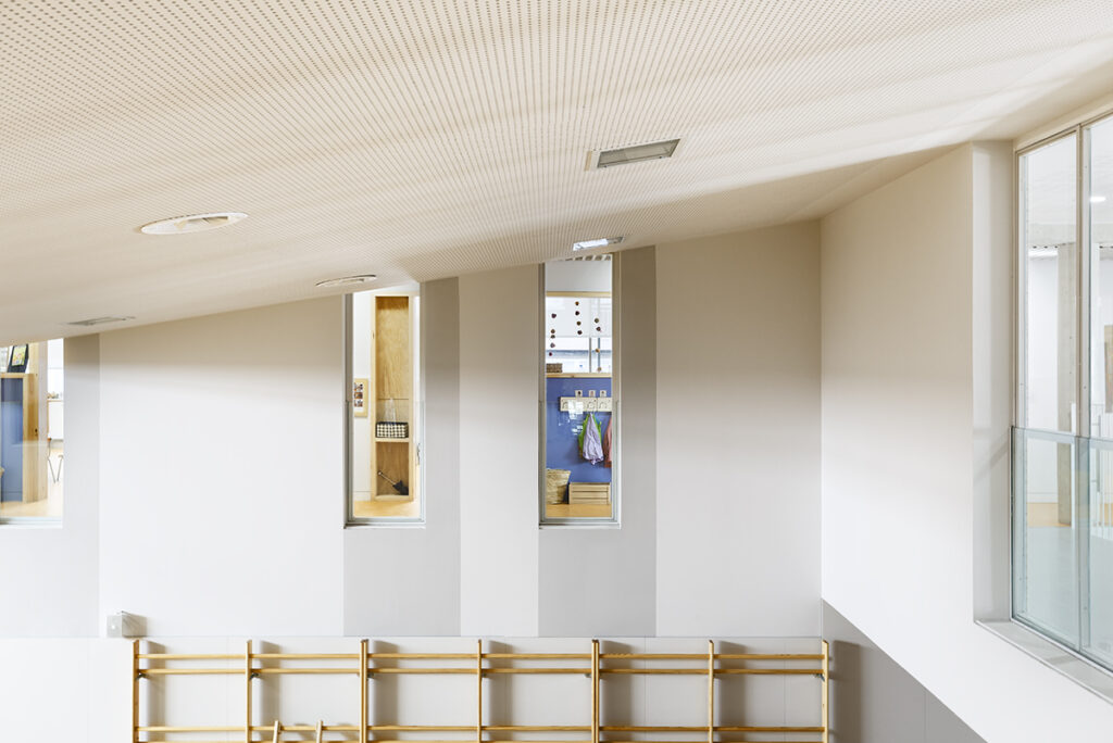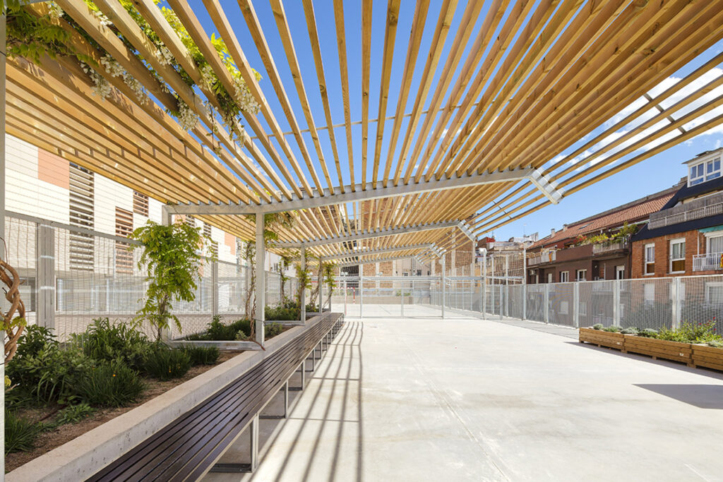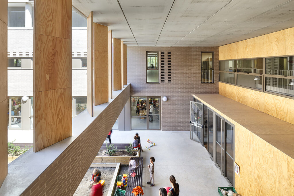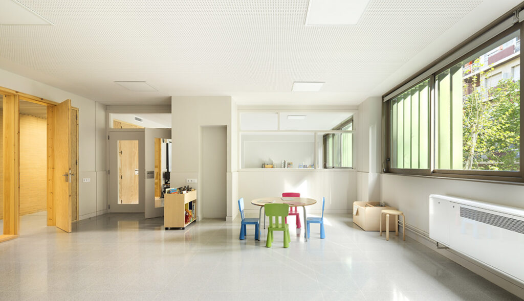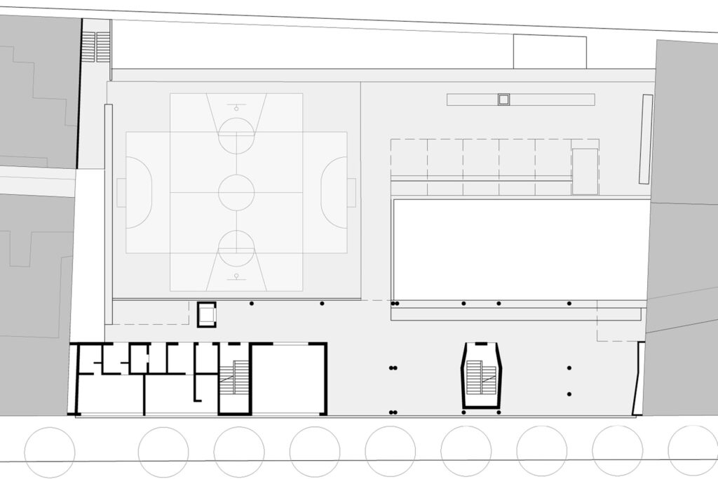 Es dona resposta al problema de l’escola en altura amb la creació de plantes baixes. La planta segona es converteix en una segona planta baixa pels alumnes de primària, espai d’esbarjo, de l’hort, dels porxos i de la pista poliesportiva. En situar-se en la planta intermèdia, a mig camí de les activitats col·lectives situades a les plantes inferiors (gimnàs, menjador i aules específiques) respecte a les aules reglades a les dues plantes superiors, la percepció d’aquest nivell serà la d’un espai d’esbarjo, però també de base, d’origen dels recorreguts. En desplaçar la referència de la planta baixa a aquesta planta segona, s’evita la sensació que s’han de pujar quatre plantes de cop, si no que la percepció -en general- serà que es pugen o baixen dues plantes.